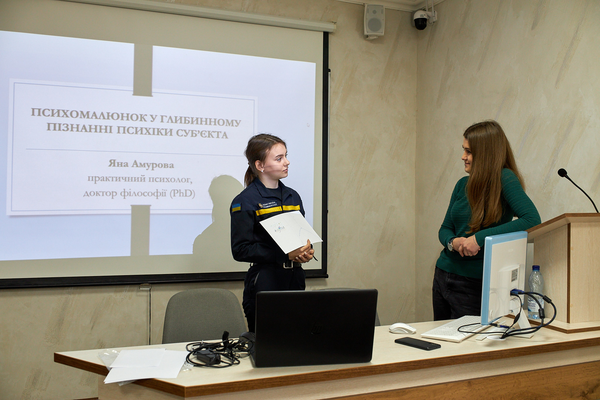 Доцент кафедри психології діяльності в особливих умовах Яна Амурова знайомить здобувачів освіти з методом активного соціально-психологічного пізнання суб’єкта. Зазначений метод передбачає самостійне виконання тематичних психомалюнків і доповнення їх репродукціями художніх полотен.