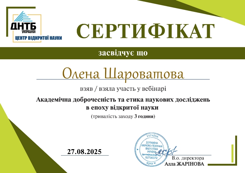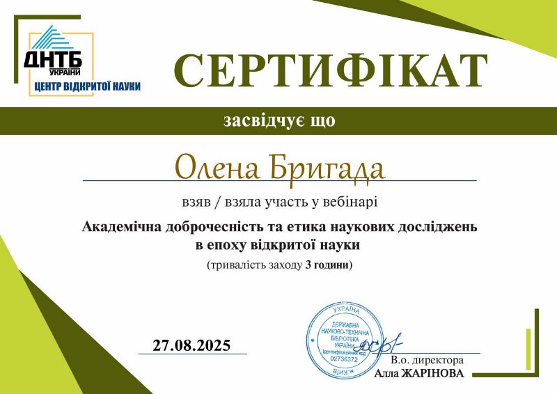 Участь у вебінарі «Академічна доброчесність та етика наукових досліджень в епоху відкритої науки», що розкрив фундаментальні принципи академічної етики, включаючи питання плагіату, фальсифікації даних та недобросовісного цитування в цифровому середовищі, дала можливість НПП розширити відповідну обізнаність в контексті відкритих даних, відкритого доступу до публікацій та колаборативних наукових проектів.