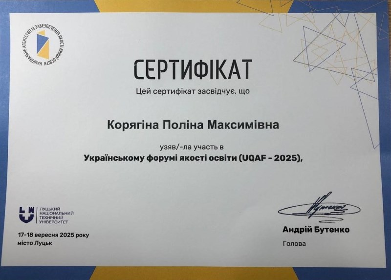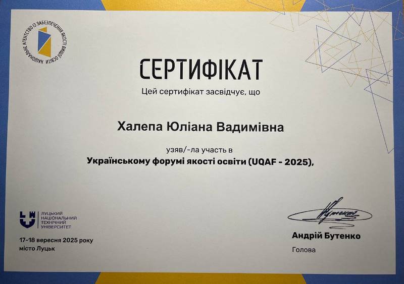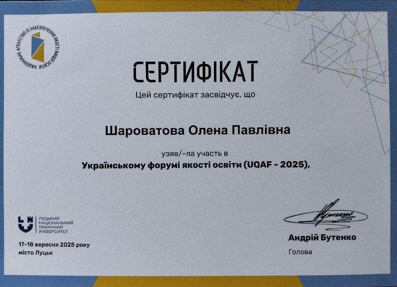 Про розвиток і майбутнє системи забезпечення якості вищої освіти в сучасній Україні науково-педагогічні працівники кафедри підвищення кваліфікації та спеціалізованої підготовки у сфері цивільного захисту Олена Шароватова, Олена Бригада, Богдан Цимбал разом з очільниками підрозділів НУЦЗ України і здобувачками освітньо-професійної програми «Охорона праці» першого (бакалаврського) рівня вищої освіти (Юліана Халепа, Поліна Корягіна) дізнавались в осередку фахових дискусій, яким 17-18 вересня 2025 року став Український форум якості освіти (UQAF-2025), що відбувся у місті Луцьк.