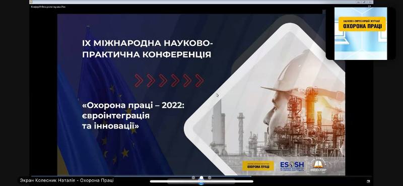 24 та 25 жовтня 2022 р. в рамках вивчення освітніх компонентів «Управління та нагляд у галузі охорони праці»; «Ризикоорієнтоване управління охороною праці»; «Профілактика нещасних випадків та професійних захворювань»; «Безпека виробничих процесів, обладнання та транспорту», на першому (бакалаврському) рівні вищої освіти, спеціальність 263 «Цивільна безпека», освітньо-професійна програма «Охорона праці»; «Атестація та паспортизація робочих місць і ергономіка»; «Діяльність міжнародної організації праці»; «Моніторинг охорони праці та теорія професійних ризиків», на другому (магістерському) рівні вищої освіти, спеціальність 263 «Цивільна безпека», освітньо-професійна програма «Охорона праці» здобувачі вищої освіти прийняли участь у IX Міжнародній науково-практичній конференції «Охорона праці – 2022: євроінтеграція та інновації».