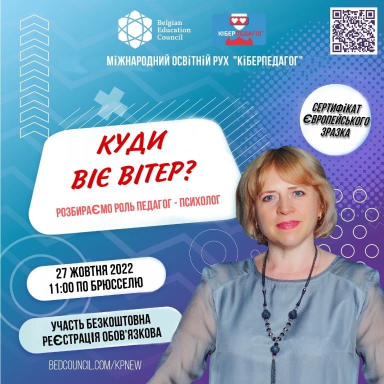 Передостанній майстер-клас 7 потоку Міжнародного освітнього руху «Кіберпедагог» (#Кіберпедагог / #Киберпедагог) на тему «Звідки віє вітер – як педагогу компетентно запобігати проблемам?» можна прирівняти до конструктивного вибуху когнітивної системи щодо розуміння моделей взаємодії «викладач - студент», прогресивним форматом серед яких може бути комунікація виключно «дорослих» его-станів. Спікерка Марина Горбунова - кандидатка соціологічних наук, доцентка з 20 річним стажем викладацької діяльності у закладах вищої освіти, представивши практичні прийоми та підходи, розкрила питання: В яких випадках викладачеві слід брати на себе роль психолога? Як це правильно зробити? Як педагог у цій ролі зможе підвищити якість навчального процесу?