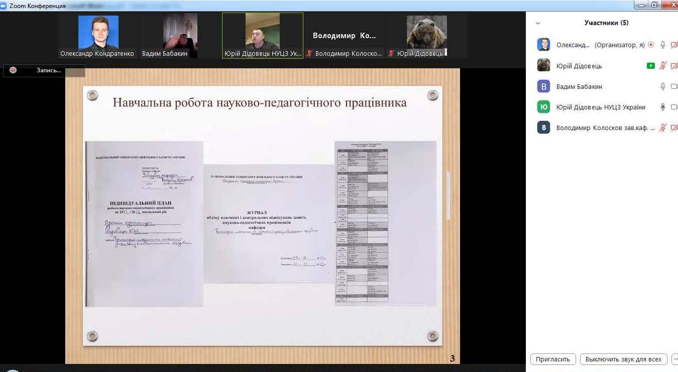 Захист результатів проходження педагогічної практики відбувався у дистанційному форматі відеоконференції у за стосунку Zoom у формі доповіді-звіту із застосуванням мультимедійної презентації, до комісії увійшли: