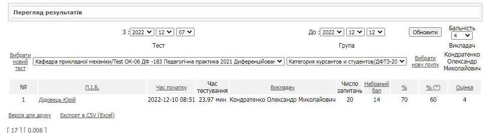 Практикантом успішно складено тестового контролю знань з педагогічної практики у системі онлайн-тестування OpenTest2.0 на оцінку «добре».
