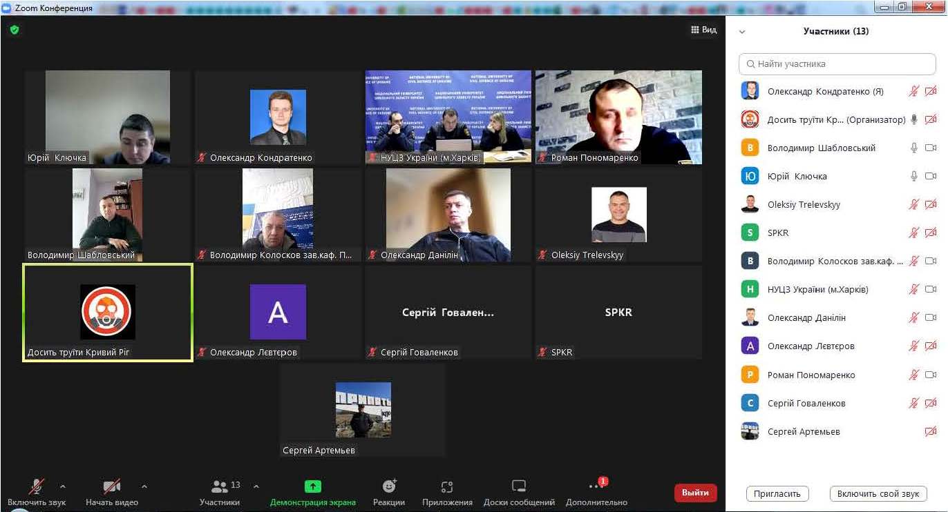 26 січня 2023 року відбулась зустріч-нарада адміністрації та науково-педагогічних працівників, що є спеціалістами з екології, екологічної безпеки, технологій захисту навколишнього середовища, моніторингу стану довкілля, Національного університету цивільного захисту України з одного боку та з адміністрацією Громадської організації «Досить труїти Кривий Ріг» (https://dtkr.com.ua) з іншого.
