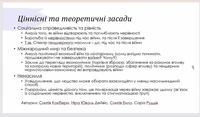 У межах опанування знань з освітнього компонента «Гендерні основи безпеки та професійної діяльності» на запрошення очільниці Центру гендерної культури Тетяни Ісаєвої здобувачі факультету техногенно-екологічної безпеки - майбутні фахівці з екологічної безпеки – разом із науково-педагогічними працівниками кафедри охорони праці та техногенно-екологічної безпеки Оленою Шароватовою, Оленою Бригадою, Богданом Цимбалом в якості здобуття неформальної освіти долучились до феміністичного інтерактиву «Фемінізм і війна в Україні».