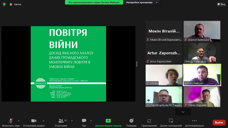 - Максим Сорока, експерт з екологічної безпеки, координатор мережі «Довкола».Досвід якісного аналізу даних громадського моніторингу повітря в умовно чистих точках.