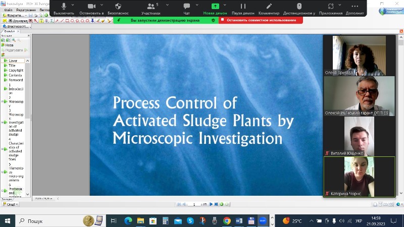 21 вересня 2023 року в рамках освітнього компоненту «Гідробіологія» викладачі кафедри ОП та ТЕБ Олена БРИГАДА та Олексій ІЛЬЇНСЬКИЙ провели заняття з групою МЕКБ-22-522 на тему «Біологічне очищення стічних вод», під час якого розглянули основні споруди, які використовують для біологічного очищення стічних вод, умови очищення та характеристики активного мулу установок біологічного очищення.