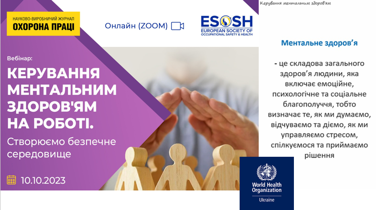 Розширюючи свої знання та поінформованість щодо питань охорони ментального здоров’я, здобувачі взяли участь в обговоренні питань важливості розвитку основних поведінкових компетенцій у сучасного фахівця з охорони праці; системи дій для створення безпечного середовища на підприємстві; впровадження програми психосоціальної підтримки на підприємстві; найкращих європейських практик з керування психологічною безпекою (навчання персоналу та керівного складу, взаємодія керівника з командою, аналіз зворотного звʼязку від працівників); особливостей впровадження керування психосоціальними ризиками в систему управління безпекою і здоров’ям на роботізгідно з ISO 45001.