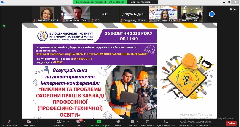 26 жовтня 2023 року на базі Білоцерківського інституту неперервної професійної освіти ДЗВО «УМО» НАПН України відбулась Всеукраїнська науково-практична інтернет-конференція«Виклики та проблеми охорони праці в закладі професійної (професійно-технічної) освіти».