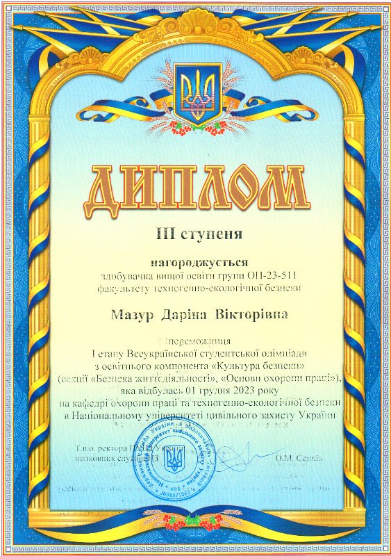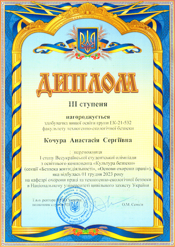 За підсумками олімпіади за освітнім компонентом “Культура безпеки” 7 здобувачів вищої освіти факультету ТЕБ зайняли призові місця.