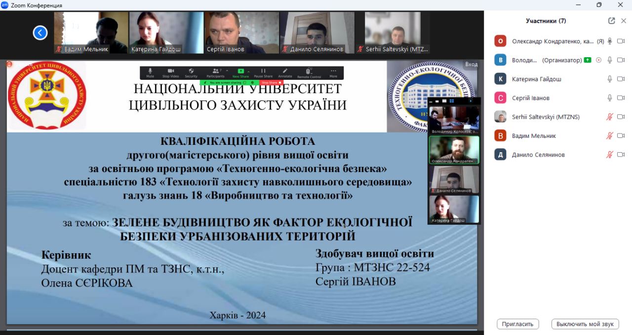 30 січня 2024 року відбулось засідання екзаменаційної комісії № 18 НУЦЗ України щодо здійснення атестації – розгляду кваліфікаційних робіт здобувачів вищої освіти другого (магістерського) рівня за ОПП «Техногенно-екологічна безпека» спеціальності 183 «Технології захисту навколишнього середовища» у галузі знань 18 «Виробництво та технології» слухачів групи МТЗНС-22-524 – Сергія ІВАНОВА, Вадима МЕЛЬНИКА, Сергія САЛЬТЕВСЬКОГО та Данила СЕЛЯНИНОВА.