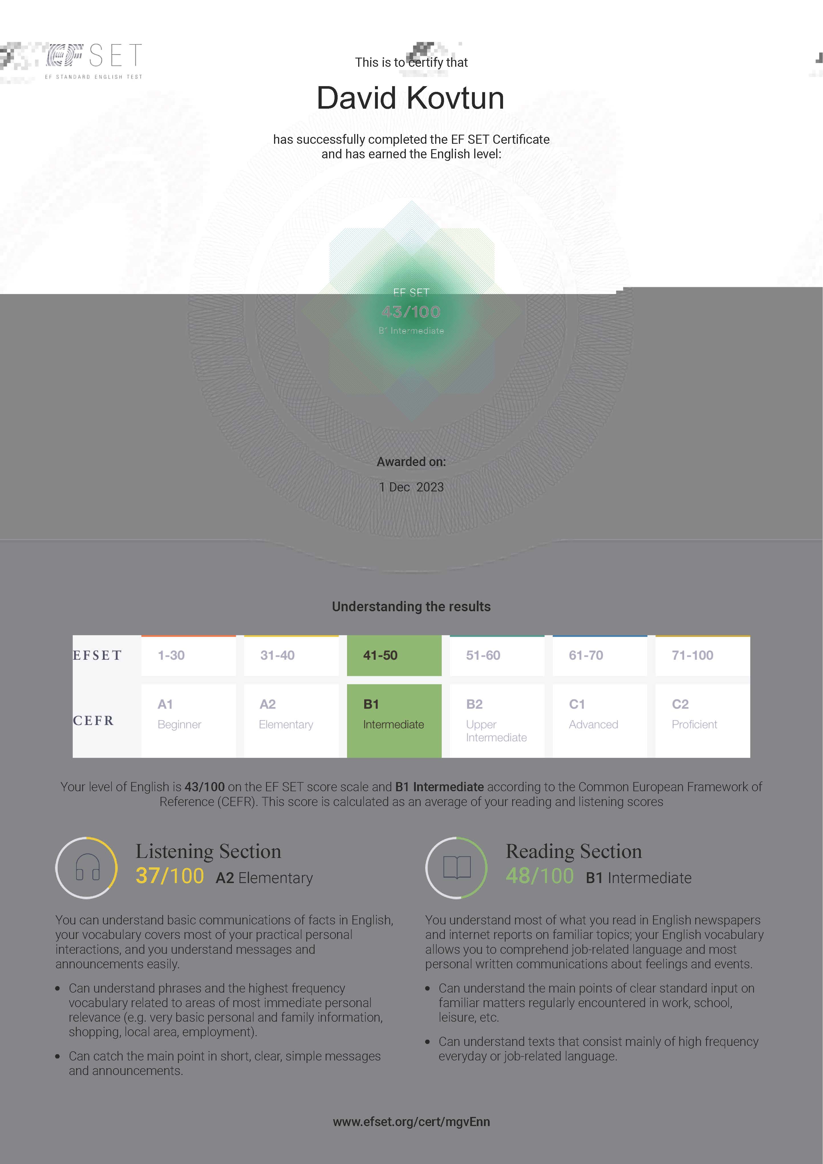 Так, здобувачі склали відповідний тест Free standardized English test calibrated to the CEFR на онлайн-платформі EF SET за посиланням https://www.efset.org/ef-set-50, запропонований колежанками з кафедри мовної підготовки соціально-психологічного факультету.