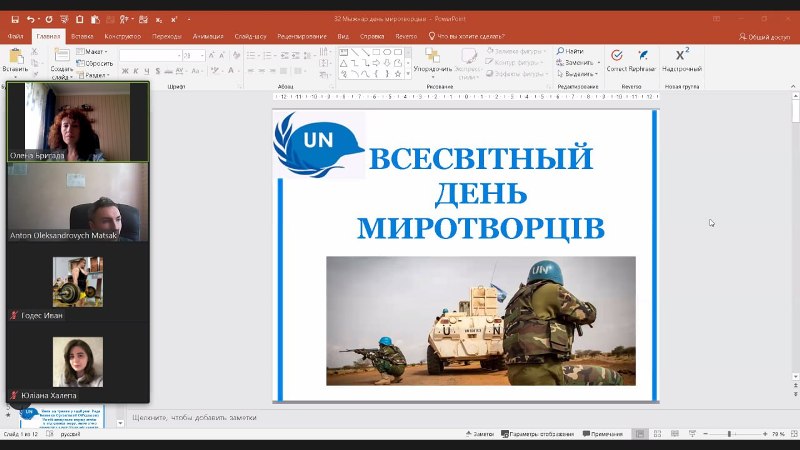 На завершення кураторської години було продемонстровано невеличке відео про залучення України до миротворчої діяльності та збереження миру на локальному і глобальному рівнях.