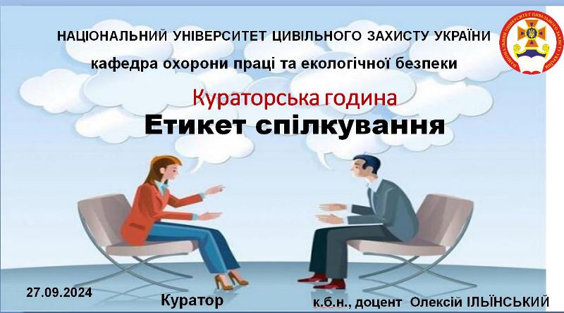 27 вересня 2024 року було проведено кураторську годину із здобувачами 1 – 4 курсів кафедри ОПЕБ за участі кураторів груп – Олени Шароватової, Олени Бригади та Олексія Ільїнського, присвячену гострому питанню – підвищення культури спілкування, особливо культури спілкування здобувачів вишу.