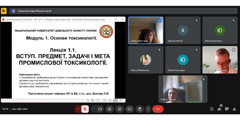2 квітня 2025 року на кафедрі охорони праці та екологічної безпеки відбулась відкрита лекція доцента кафедри Бригади О.В. за вибірковим освітнім компонентом «Промислова токсикологія» для здобувачів вищої освіти групи ОП/б 1-23, які навчаються на першому (бакалаврському) рівні за освітньо-професійною програмою «Охорона праці». Лекцію відвідали науково-педагогічні працівники кафедри ОПтаЕБ: виконуючий обов’язки завідувача кафедри Ільїнський О.В., доцент Рибалова О.В., ст. викладач Мацак А.О., викладач Ільєвська Ю.А., викладач Колошко Ю.В.