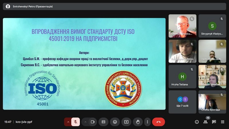 У межах проведення в НУЦЗ України Міжнародної науково-практичної конференції молодих учених «Проблеми та перспективи забезпечення цивільного захисту» 16 травня 2025 року на кафедрі охорони праці та екологічної безпеки відбулось онлайн-засідання Секції 10 «Охорона праці та техногенно-екологічна безпека».