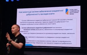 - Іван Назаров, Заступник Голови агентства, зосередив увагу на питанні постакредитаційного моніторингу освітніх програм, а також презентував основні положення Проєкту Закону України «Про академічну доброчесність» - документу, що має стати важливим етапом в утвердженні етичних стандартів в освіті.
