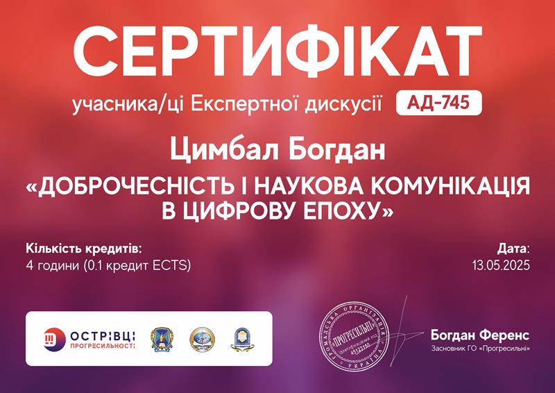 Відтак, 13 травня 2025 року науково-педагогічні працівники кафедри разом зі здобувачами освітніх програм бакалаврського рівня «Охорона праці» та «Екологічна безпека» долучилися до участі у міжуніверситетській експертній дискусії на тему: «Доброчесність і наукова комунікація в цифрову епоху», що відбулася в онлайн-форматі в межах проєкту «Острівці Прогресильності» у співпраці із партнерськими закладами вищої освіти.