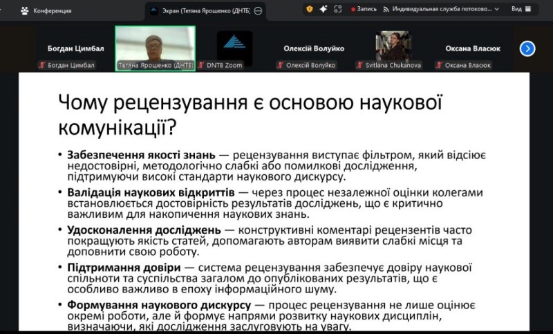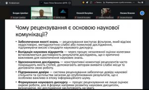 Організований Державною науково-технічною бібліотекою України, вебінар охопив актуальні теми сучасної наукової практики: етику використання штучного інтелекту в дослідженнях, питання конфіденційності та захисту персональних даних у відкритих наукових проектах, а також механізми забезпечення прозорості та відтворюваності результатів досліджень. Окремо розглядались роль та функції Комітету з етики наукових досліджень (IRB - Institutional Review Board) у забезпеченні етичних стандартів, процедури отримання етичного дозволу для досліджень з участю людей, а також адаптації традиційних етичних процедур до вимог відкритої науки та міжнародної співпраці.