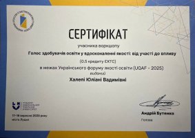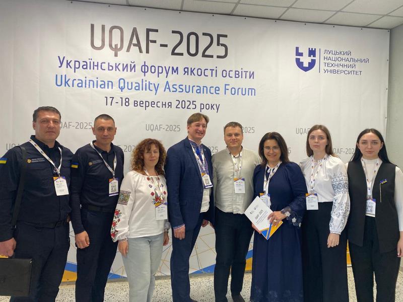 Про розвиток і майбутнє системи забезпечення якості вищої освіти в сучасній Україні науково-педагогічні працівники кафедри підвищення кваліфікації та спеціалізованої підготовки у сфері цивільного захисту Олена Шароватова, Олена Бригада, Богдан Цимбал разом з очільниками підрозділів НУЦЗ України і здобувачками освітньо-професійної програми «Охорона праці» першого (бакалаврського) рівня вищої освіти (Юліана Халепа, Поліна Корягіна) дізнавались в осередку фахових дискусій, яким 17-18 вересня 2025 року став Український форум якості освіти (UQAF-2025), що відбувся у місті Луцьк.