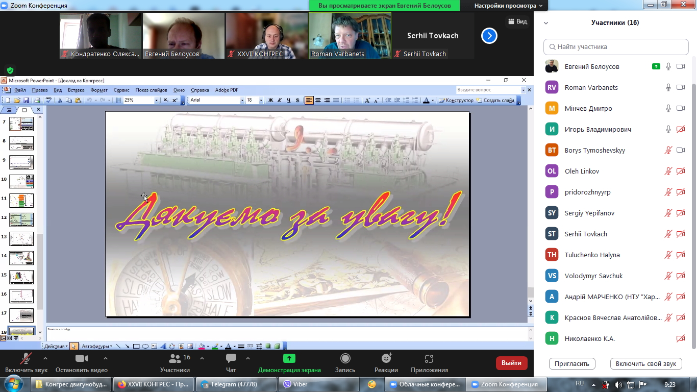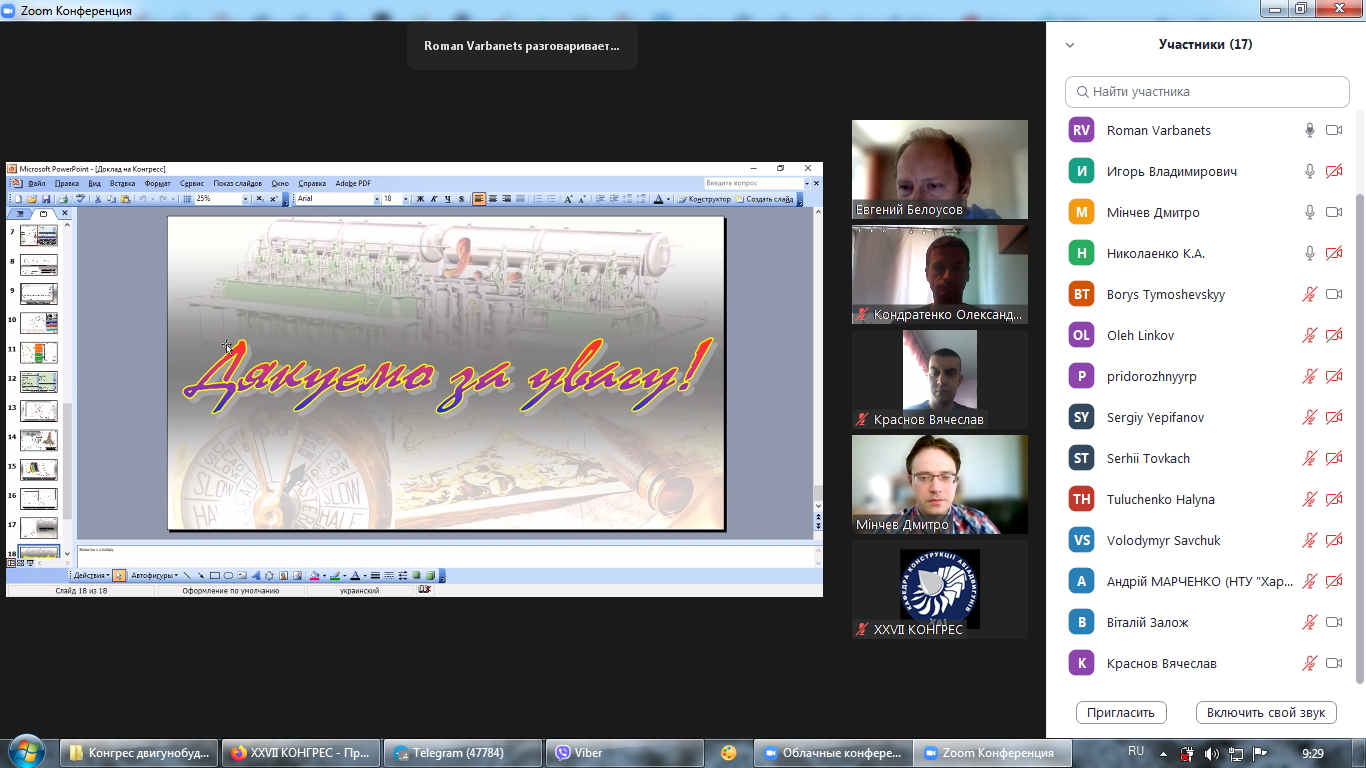 Слід зазначити, що у збірнику тез доповідей конгресу опубліковано тези доповіді на тему «Taking into account the emissions of motor fuel vapors in the criteria-based assessment of the ecological safety level of power plants with reciprocating ICE exploitation process», а також статтю науково-технічному журналі «Двигуни внутрішнього згоряння» (видання категорії «Б» з переліку фахових видань переліку МОН України за спеціальністю 142 «Енергетичне машинобудування») на тему «Taking into account the emissions of motor fuel vapors in the criteria-based assessment of the ecological safety level of power plants with reciprocating ice exploitation process», у авторський колектив обох публікацій увійшов ад’юнкт кафедри Вячеслав КРАСНОВ.