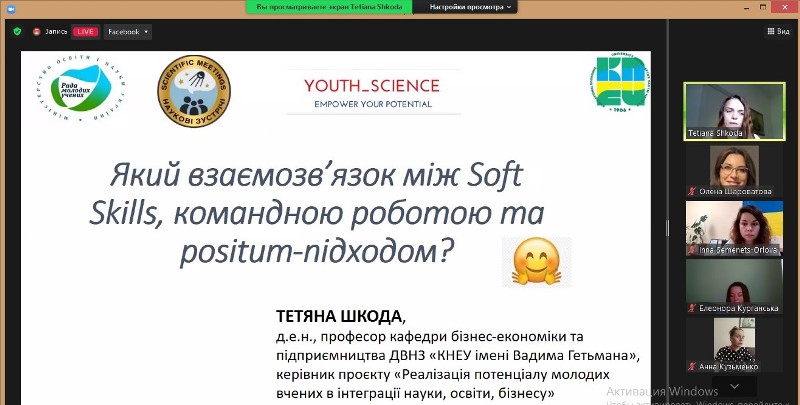 У межах лекторію «Наукові зустрічі /Scientific meetings» проєкту «Реалізація потенціалу молодих вчених в інтеграції науки, освіти, бізнесу» гаранти освітніх програм, Олена Бригада та Олена Шароватова взяли участь в онлайн-трансляції події на тему «Розвиток Soft Skills для реалізації потенціалу молодих вчених».