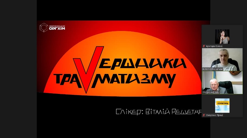 Цього разу кроком подальшого професійного становлення і самовдосконалення стала участь доцентів кафедри Олени БРИГАДИ, Олени ШАРОВОТОВОЇ, Богдана ЦИМБАЛА та ст. викладачки Ганни РЕЗНІЧЕНКО у вебінарі від фахівців-практиків «Вершники травматизму», презентованому 20 січня 2022 року науково-виробничим журналом «Охорона праці» в авторстві начальника відділу охорони праці та промислової безпеки ПрАТ «Сєвєродонецький ОРГХІМ» Віталія Решетняка, який спеціалізується на розробці документів системи управління охороною праці та промисловою безпекою; аудиті й супервайзингу виробничої безпеки та якості.
