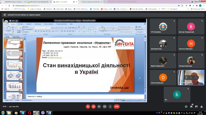 18 листопада 2021 року для здобувачів вищої освіти, які навчаються за спеціальністю 263 «Цивільна безпека» (освітньо-професійна програма «Охорона праці») в межах тривалого співробітництва з відділом науково-інформаційного забезпечення інноваційних процесів, Харківської державної наукової бібліотека імені В.Г. Короленка відбулася лекція з навчальної дисципліни «Інтелектуальна власність» на тему: «Стан винахідницької діяльності в Україні» під керівництвом зовнішнього стейкхолдера, фахівця-практика, представника Патентно-правової компанії «Інвента» Євгена Стогнія.