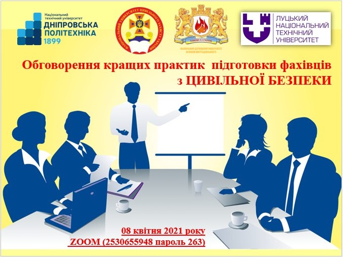 8 квітня 2021 року проведено онлайн зустріч представників академічної спільноти НТУ «Дніпровська політехніка», Національного університету цивільного захисту України, Львівського державного університету безпеки життєдіяльності, Луцького національного технічного університету, Інституту державного управління та наукових досліджень з цивільного захисту щодо обговорення тенденцій розвитку освітніх програмах за спеціальністю 263 «Цивільна безпека». Під час заходу відбувся активний обмін думками про можливі шляхи покращення програмних результатів освітніх програм через використання кращих ініціатив викладання навчальних дисциплін, удосконалення матеріально-технічного забезпечення, способів розширення практичної підготовки фахівців, аспектів міжнародної діяльності, критеріїв оцінювання здобувачів вищої освіти за дуальною формою освіти, забезпечення гендерної рівності, урізноманітнення вибіркової складової освітніх програм для формування відповідних м’яких навичок (soft skills). Під час зустрічі гаранти освітньо-професійних програм спеціальності 263 «Цивільна безпека» також наголосили на необхідності відокремлення спеціальності «Охорона праці» та спеціальності «Цивільний захист» у межах галузі знань 26 Цивільна безпека. Також були обговорені питання конструктивних шляхів формування корпоративної культури та академічної доброчесності.