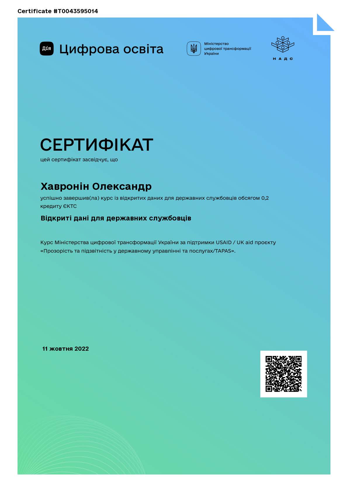 Переможець І туру Всеукраїнської олімпіали з дисципліни "Академічна доброчесність", 2023 р.