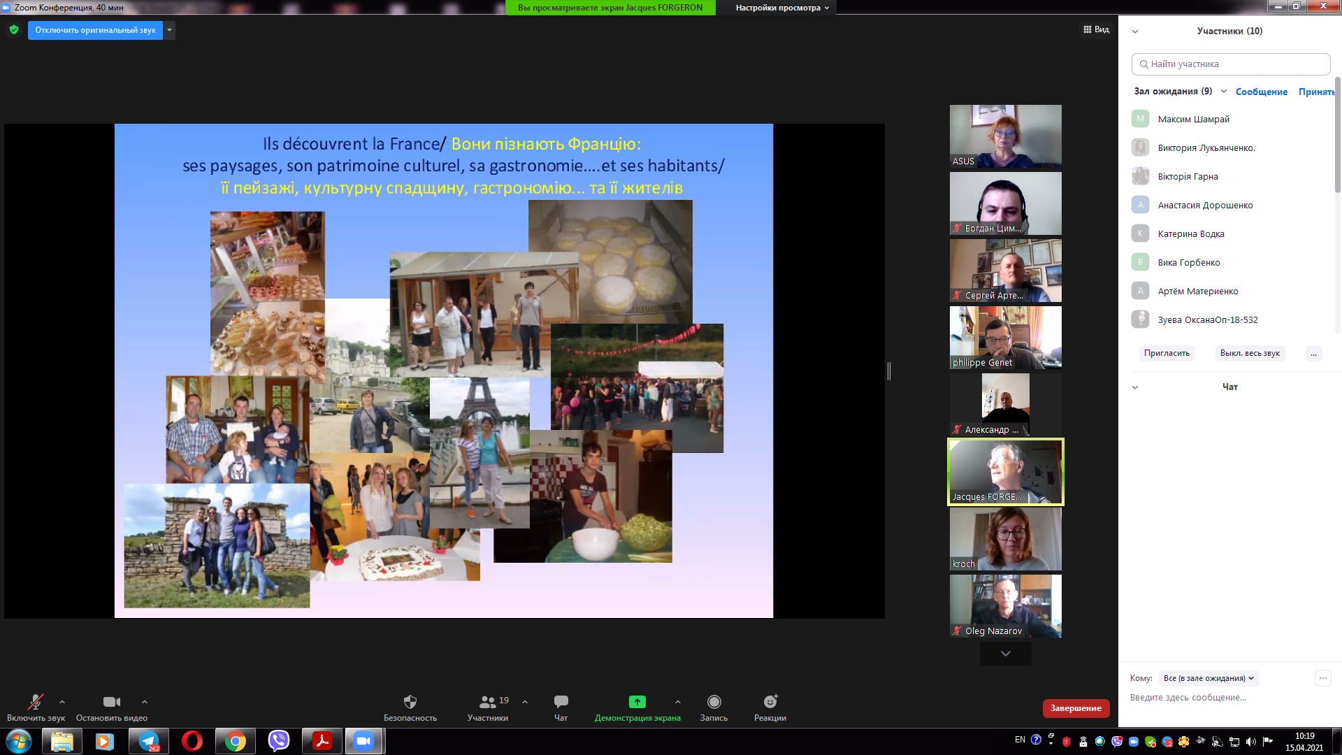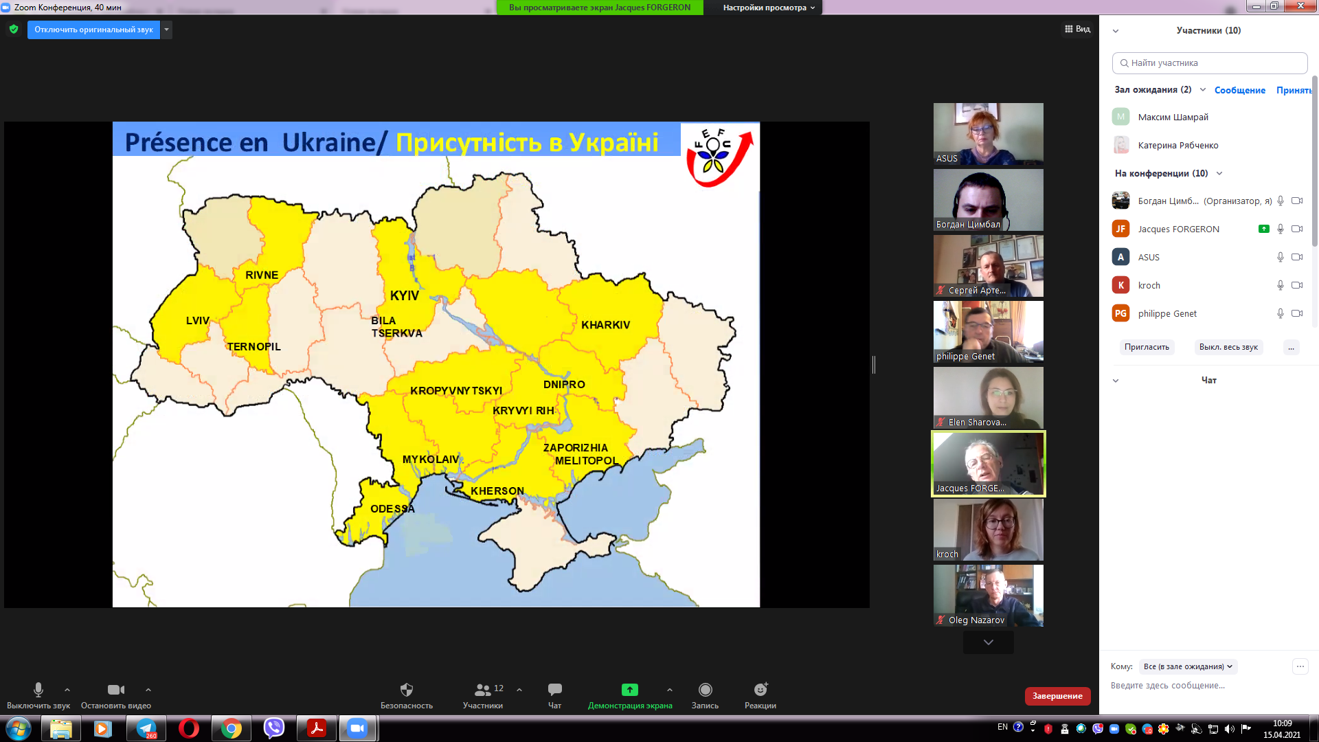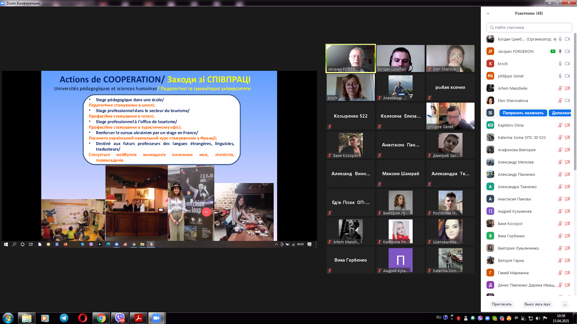 15 квітня 2021 року відбулася онлайн зустріч керівництва університету з представниками Федерації «Обміни Франція Україна» та Асоціації Пуату Шарант Україна. На зустрічі були присутні Жак ФОРЖЕРОН співпрезидент Федерації "Обміни Франція-Україна", відповідальний за відділ співпраці Філіп ЖЕНЕ президент Асоціації "Співпраця Пуату Шарант Україна", відповідальний за організацію стажувань в аграрній сфері Ольга ГОНСЕ секретар Федерації, від університету проректор з навчальної роботи Олег НАЗАРОВ, помічник ректора з міжнародного співробітництва Денис ЛЄБЄДЄВ, декан факультету техногенно-екологічної безпеки Олександр МЄТЄЛЬОВ, доценти кафедри охорони праці та техногенно-екологічної безпеки Ольга РИБАЛОВА, Богдан ЦИМБАЛ, Олена ШАРОВАТОВА. На зустрічі було представлено діяльність Федерації Франції Україна, а також визначені перспективні напрямки діяльності, зокрема проведення професійних зустрічей та конференцій з фахівцями-практиками в галузі екології та охорони праці, які будуть проведені у наступному навчальному році починаючи з вересня місяця.