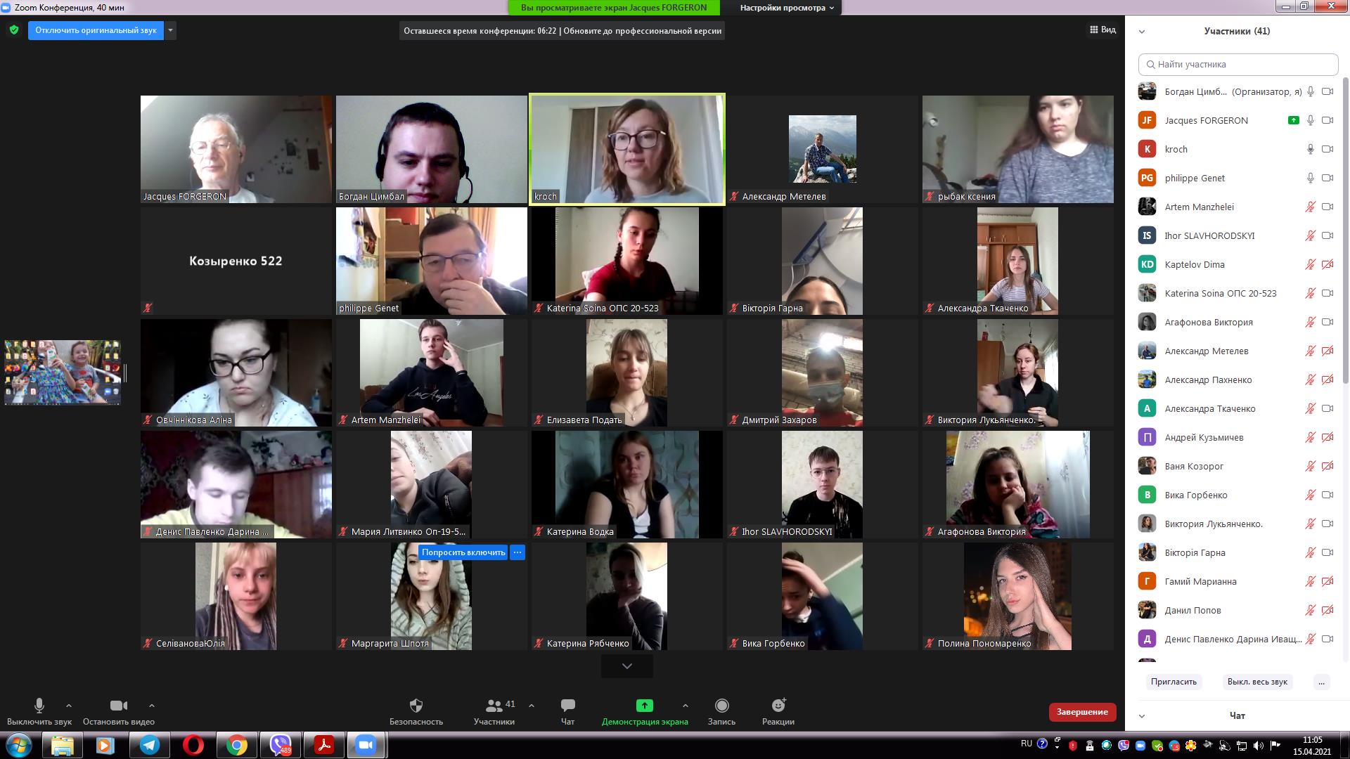 Заключним етапом зустрічі стала співбесіда зі здобувачами вищої освіти, 1 року навчання, освітньо-професійної програми «Охорона праці» Ігорем СЛАВГОРОДСЬКИМ та Артемом МАНЖЕЛЕЄМ, які пройшли попередню співбесіду. Вони мали змогу презентувати себе та висловити сильну мотивацію стосовно професійного стажування, також здобувачка 3 курсу мала змогу бути присутньою на співбесіді та у майбутньому її пройти. Побажаємо хлопцям наполегливої праці та прогресу у вивченні французької мови, а також успішним проходженням співбесіди в кінці травня цього року.